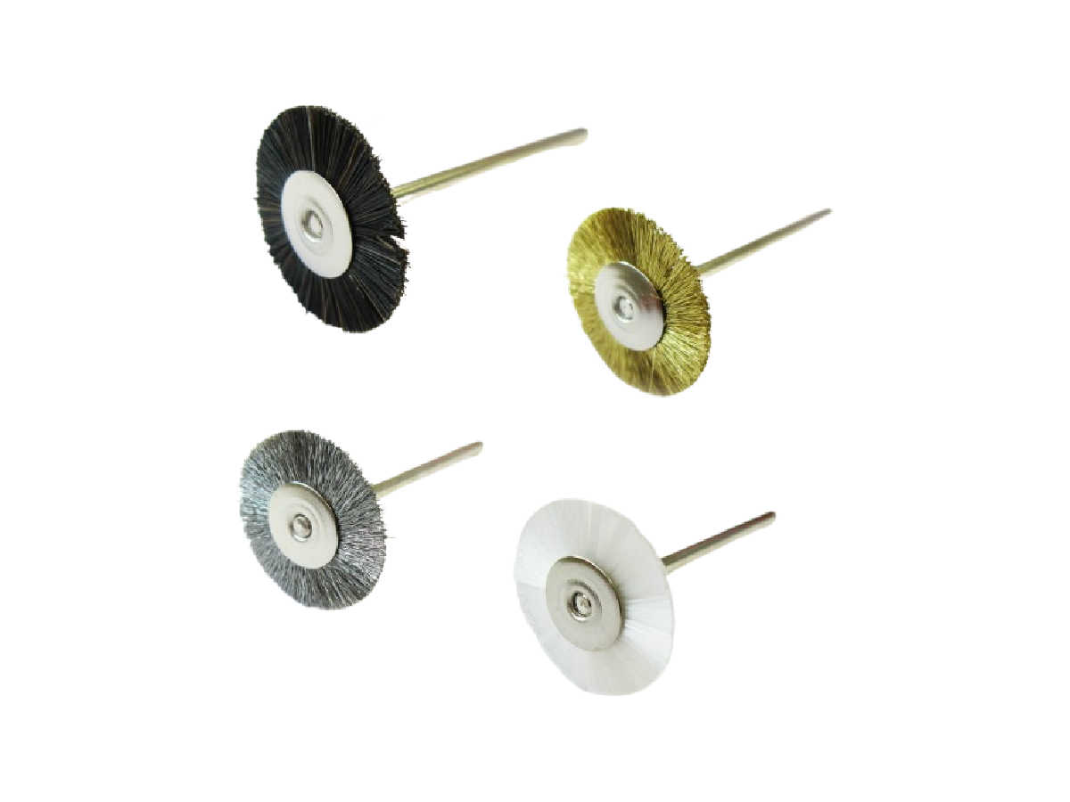 Small mounted wire wheels in steel, stainless steel and brass polishing wheels are commonly used for texturing, cleaning and brushing any metal or plastic (rubber). wire wheels can be used for rust removal on metal and can create a lovely scratched texture.