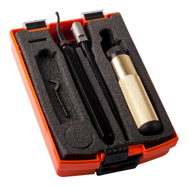 The kit contains 6 multi-purpose deburring tools: